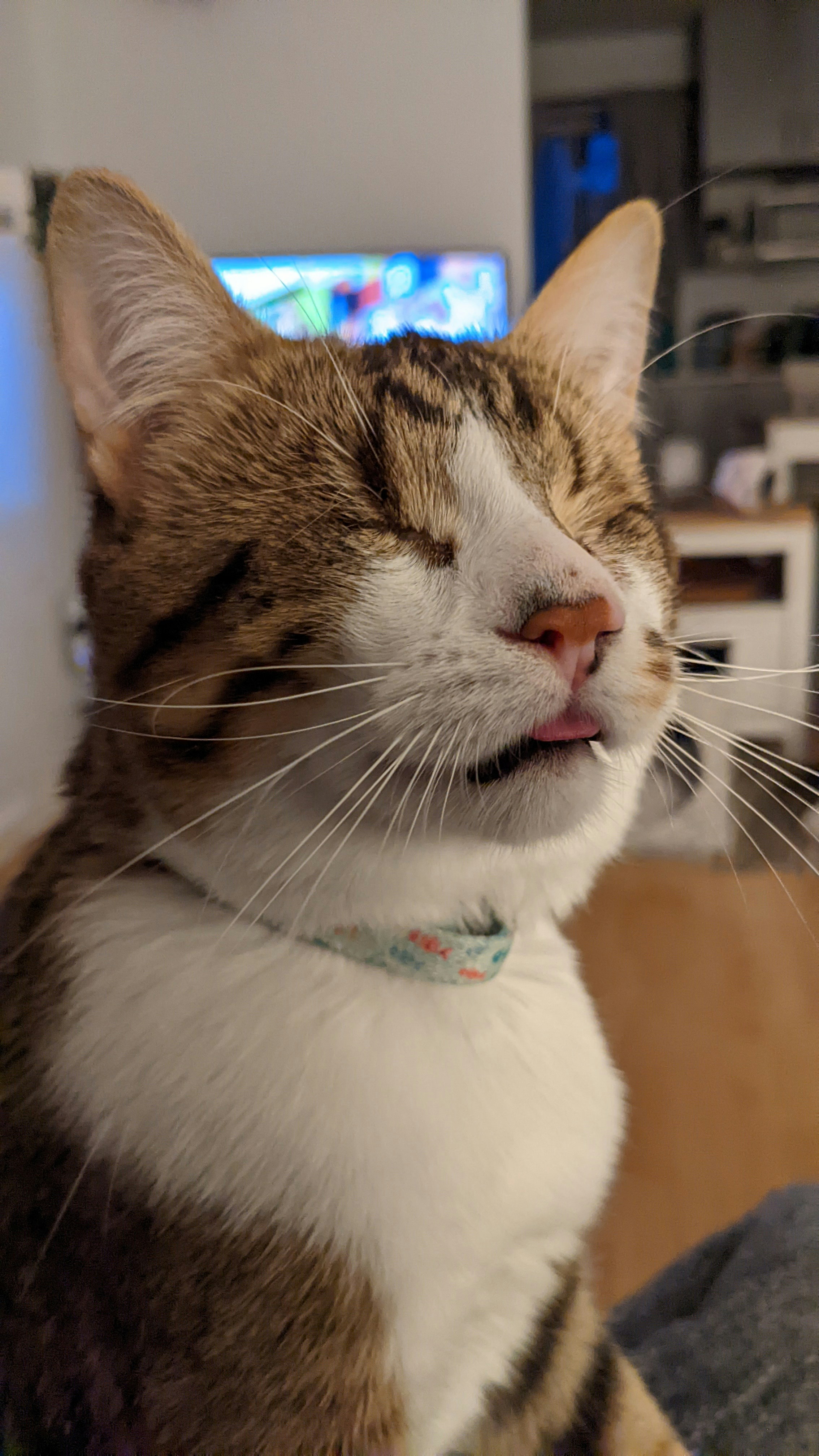 So this morning I noticed that my cats bottom lip is swollen. So I decided to test that out before I take her to a vet. She doesnt seem bothered by it at all and isnt acting any different than normal.